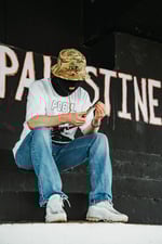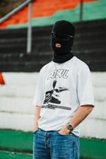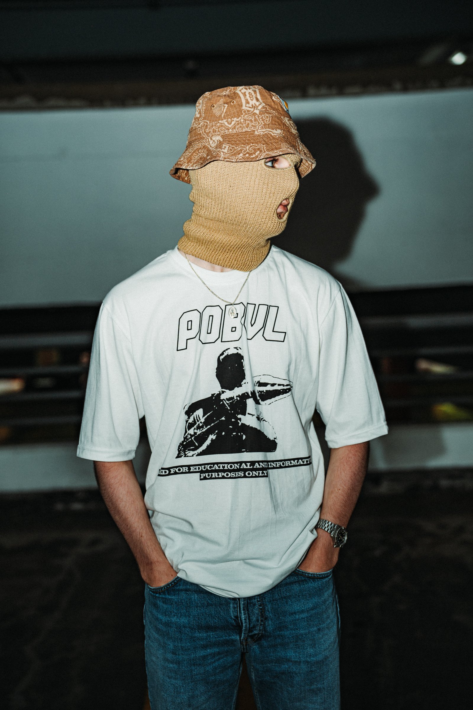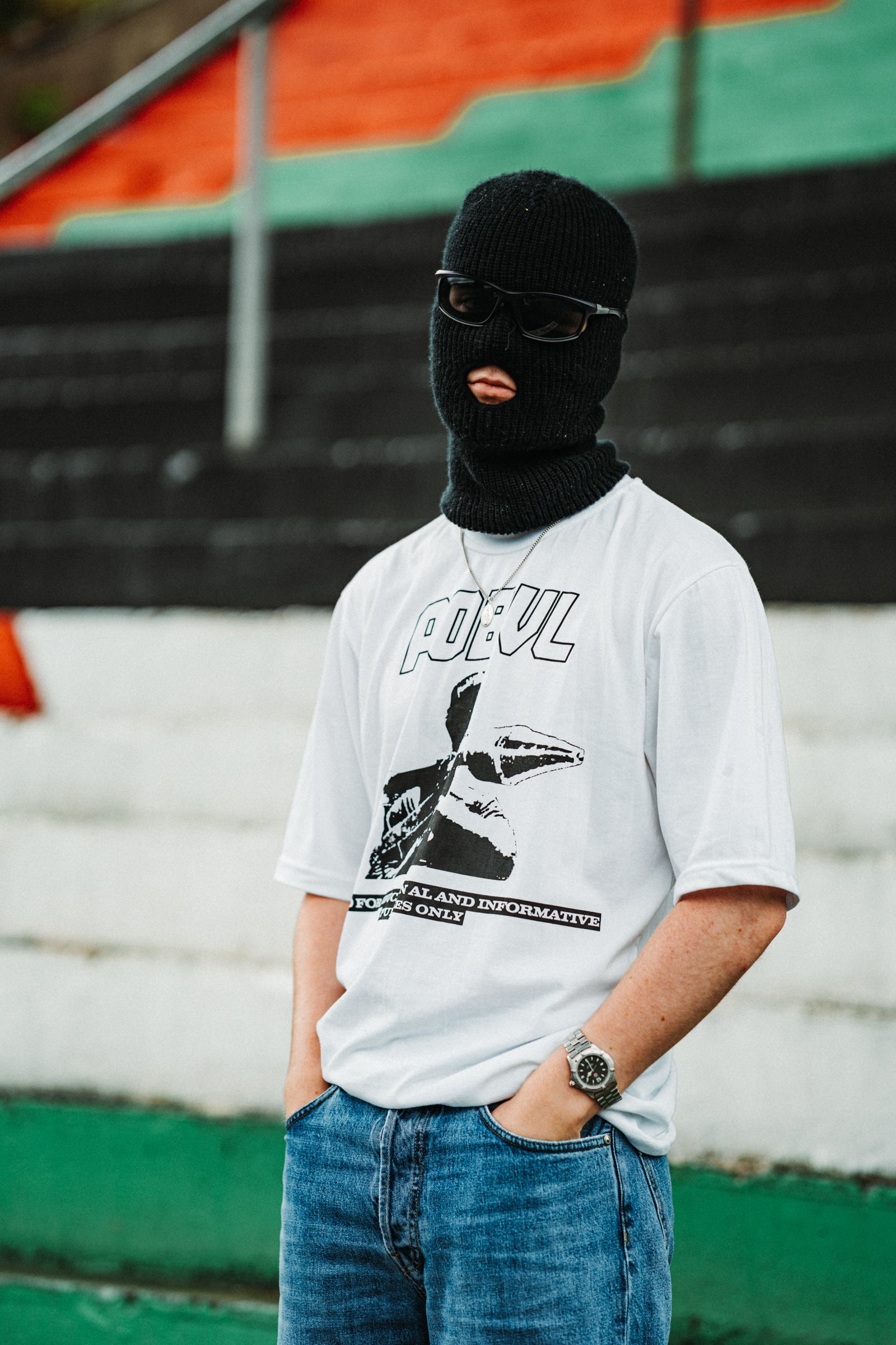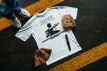 White tee with logo on front and back, with front displaying militant armed with an RPG-7.